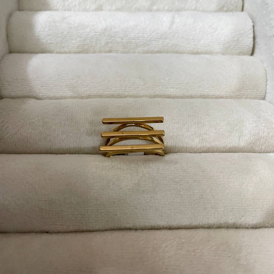 انگشتر فشن طرح طلا 3 لاین بسیار ترند و خاص جنس درجه یک ضد حساسیت رنگ ثابت بهترین کیفیت موجود در بازار