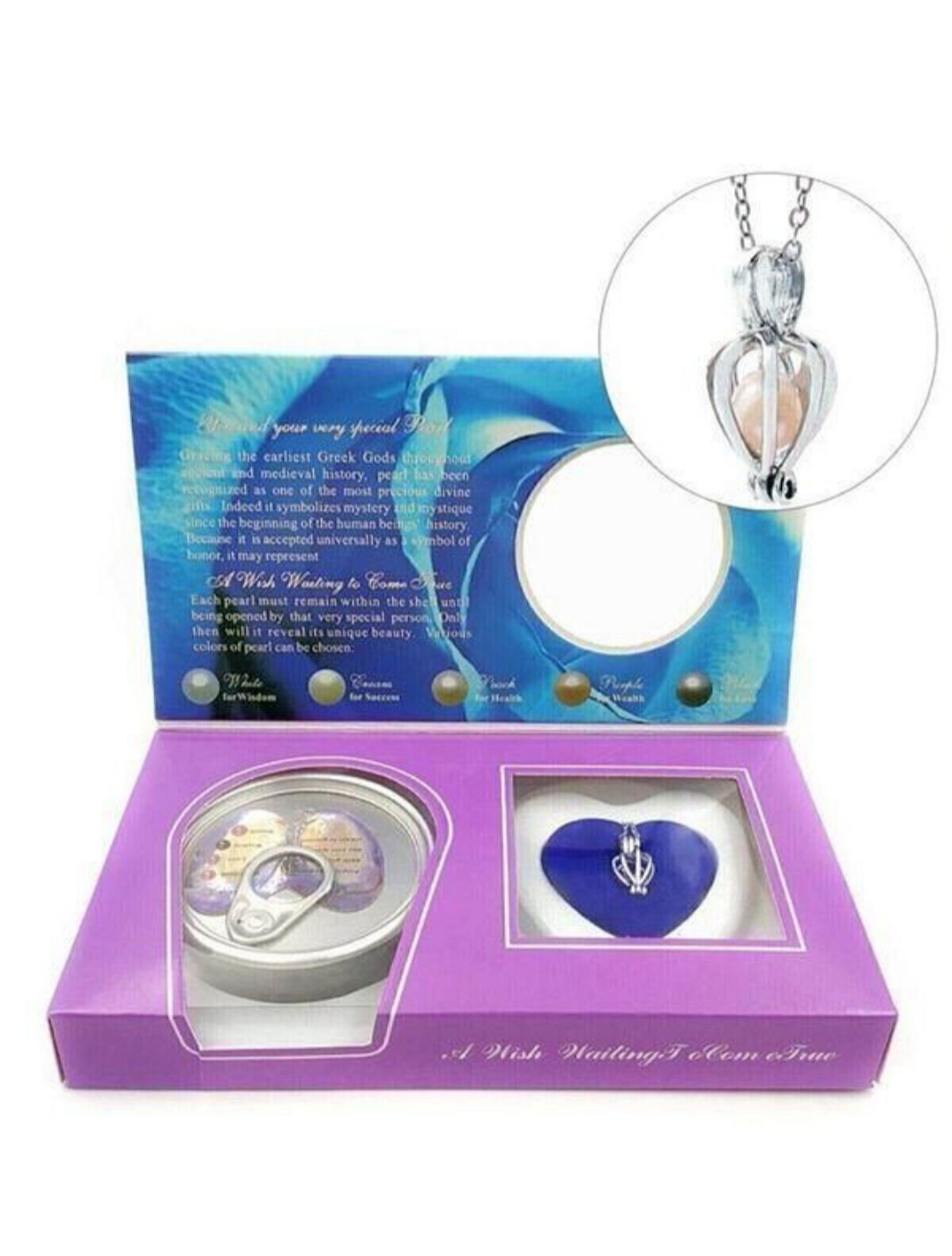 باکس سوپرایز گردنبند مروارید صدف طبیعی به حالت کنسرو شده که پس از بازگشایی داخل گردن آویز مخصوص داخل باکس قرار میگیرد