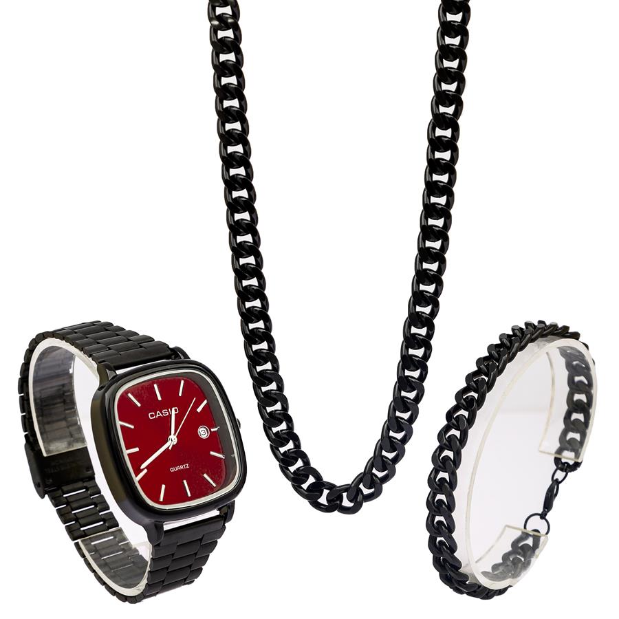 گردنبند و دستبند : کارتیر بلک 2025 جنس : استیل ضد زنگ و رنگ ثابت و ضد حساسیت عرض زنجیرها : قطور