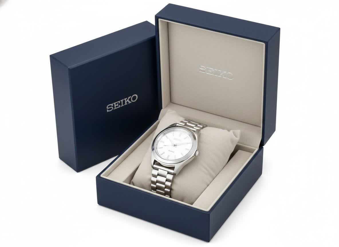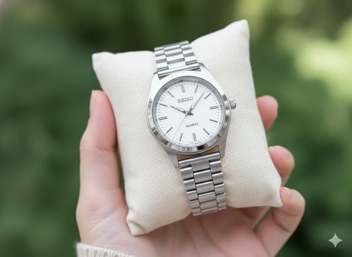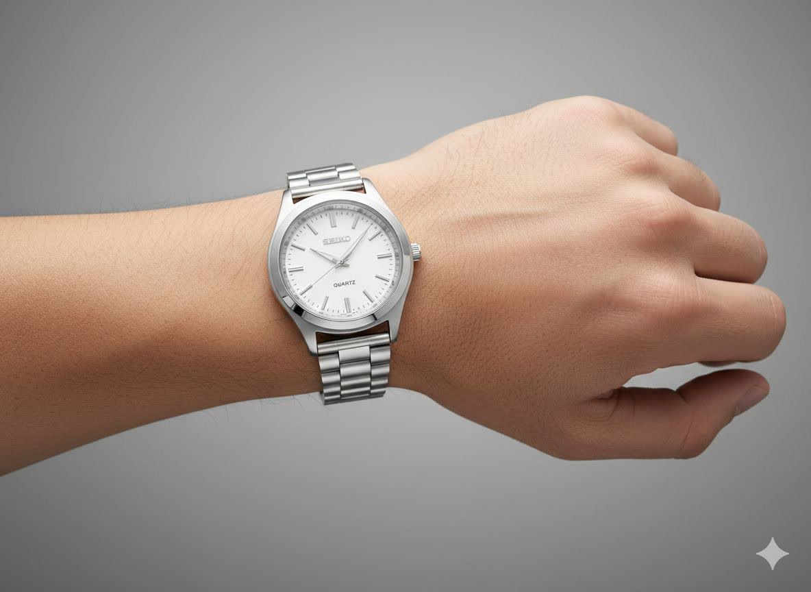 ساعت مچی مردانه برند سیکو استیل صفحه سفید کیفیت عالی قفل کلیپسی بند استیل ضد حساسیت رنگ ثابت موتور کوارتز طرح کلاسیک مناسب افراد خاص پسند و خوش استایل
