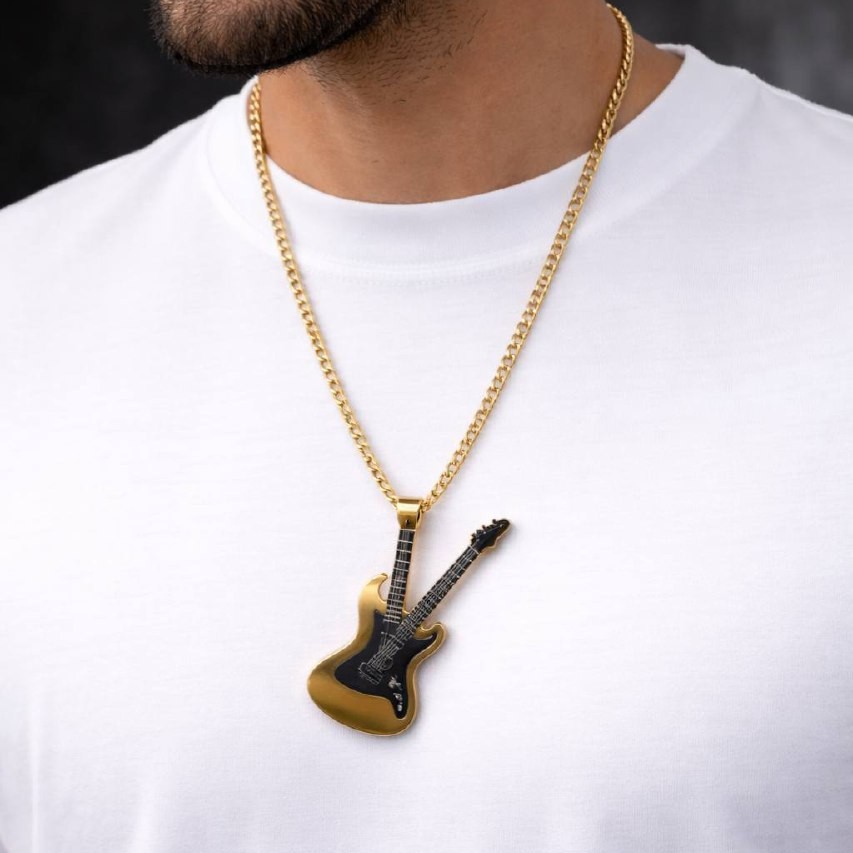 استیل با درخشندگی و مقاومت بالایی که دارد به یک گزینه محبوب برای استفاده در زیورآلات و بدلیجات تبدیل شده است. علاوه بر این، فلز استیل ضد حساسیت بوده و برای کسانی که به دلیل حساسیت قادر نیستند از زیورآلات استفاده کنند، یک گزینه محبوب محسوب می شود. ضد خش بودن این فلز نیز به سازندگان زیورآلات اجازه می دهد محصولاتی تولید کنند که سالها کیفیت خود را حفظ می کند. پوشش اکسید کروم که از خش افتادن سطح استیل جلوگیری می کند باعث می شود از واکنش با سایر مواد شیمیایی نیز بر حذر باشد. در محیط هایی که سطح نمک، زیاد است نقره دچار تغییر رنگ می شود، اما استیل اینطور نیست. بنابراین، برای شنا، غواصی و سایر ورزش های آبی زیورآلات استیل بهترین گزینه هستند. افرادی که پوست شان به سایر زیورآلات و بدلیجات حساسیت نشان می دهد نیز می توانند از زیورآلات استیل به عنوان یک جایگزین ارزان و جذاب استفاده کنند. گردنبند استیل طرح گیتار الکتریک دارای آویزی به ابعاد 1.9x4.5 سانتیمتر و زنجیر دیپلمات با طول 45 سانتیمتر است. از خصوصیات این گردنبند وزن 6.5 گرمی آن است که یک گردنبند ظریف و سبک بوده و دارای قیمتی مناسب و کیفیتی بالا می باشد. این گردنبند زیبا به دلیل رنگ ثابت و طلایی آن، می تواند جایگزینی مناسب، برای زیورآلاتی همچون طلا باشد. این محصول دارای یک جعبه کادویی شکیل بوده که این امکان را فراهم می کند تا به عنوان هدیه ای خاص به عزیزانتان اهدا گردد.