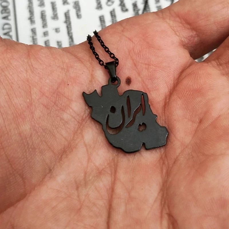 مدل: گردنبند فوق العاده جذاب طرح نقشه ایران با فونت نستعلیق جنس پلاک: استیل رنگ مشکی ضد حساسیت بهترین استیل موجود در بازار مردانه و زنانه