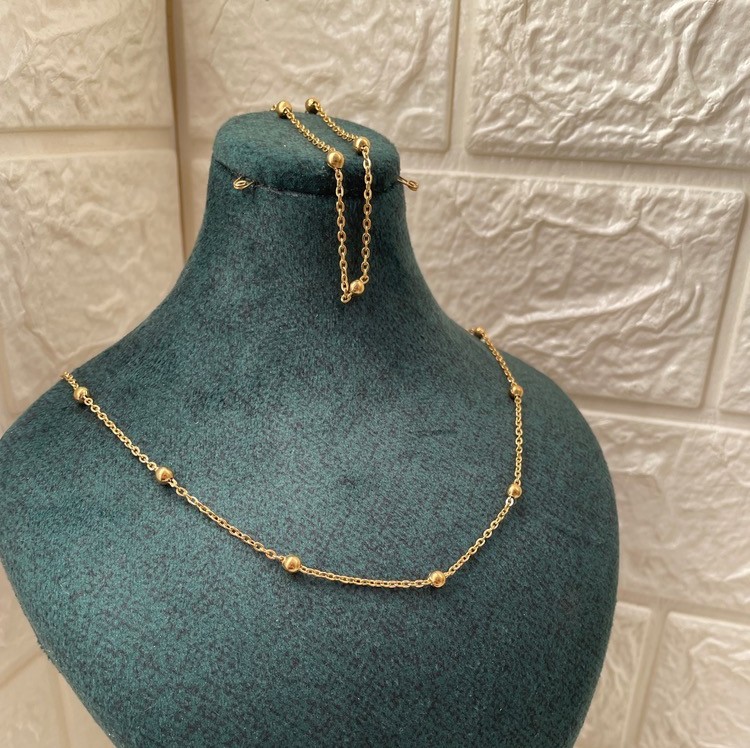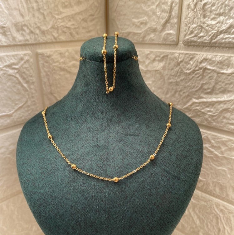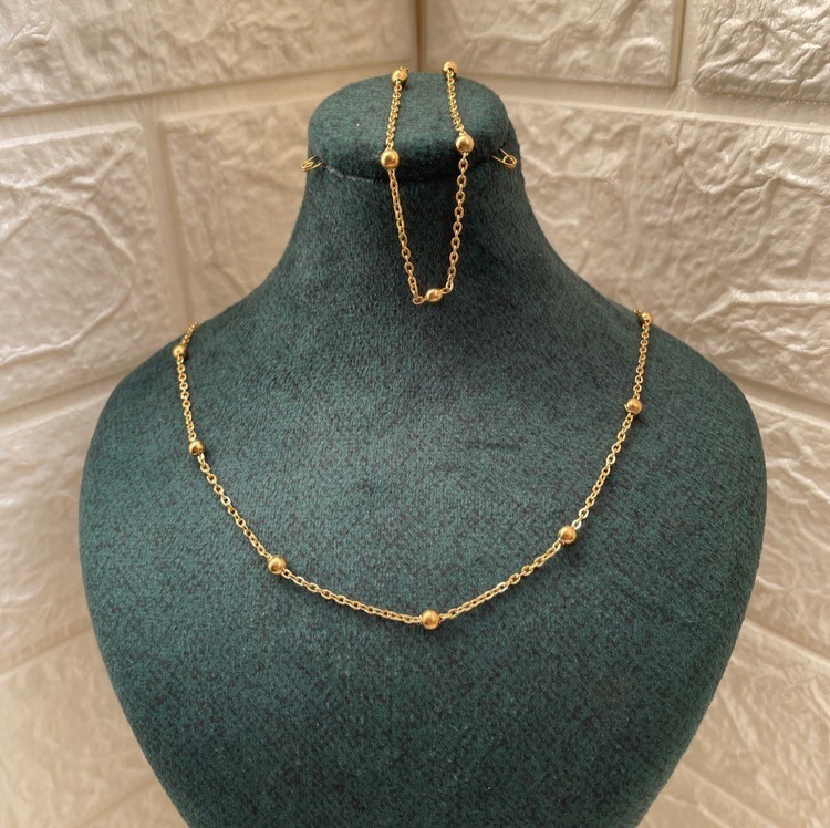 نیم ست گردنبند و دستبند طلایی توپی
