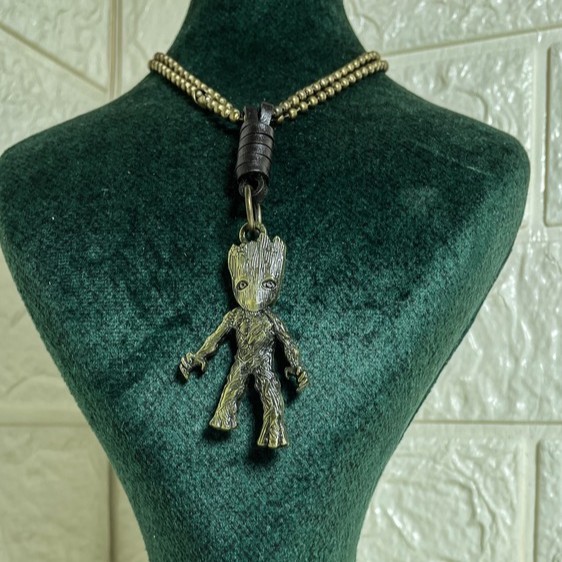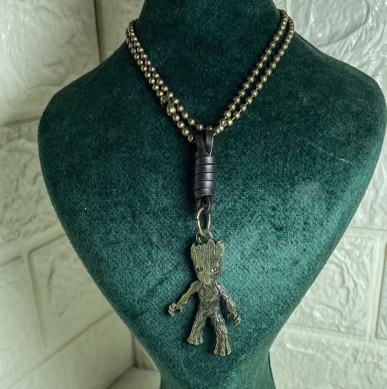 گردنبند و آویز طرح آدمک درختی از جنس زاماک بوده و به رنگ برنجی است.