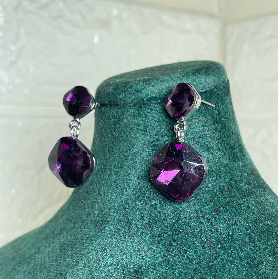 گوشواره جواهری بسیار جذاب با تراش الماسی فوق الاده خیره کننده ضد حساسیت رنگ ثابت بهترین کیفیت موجود در بازار