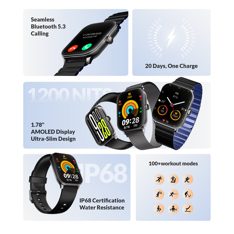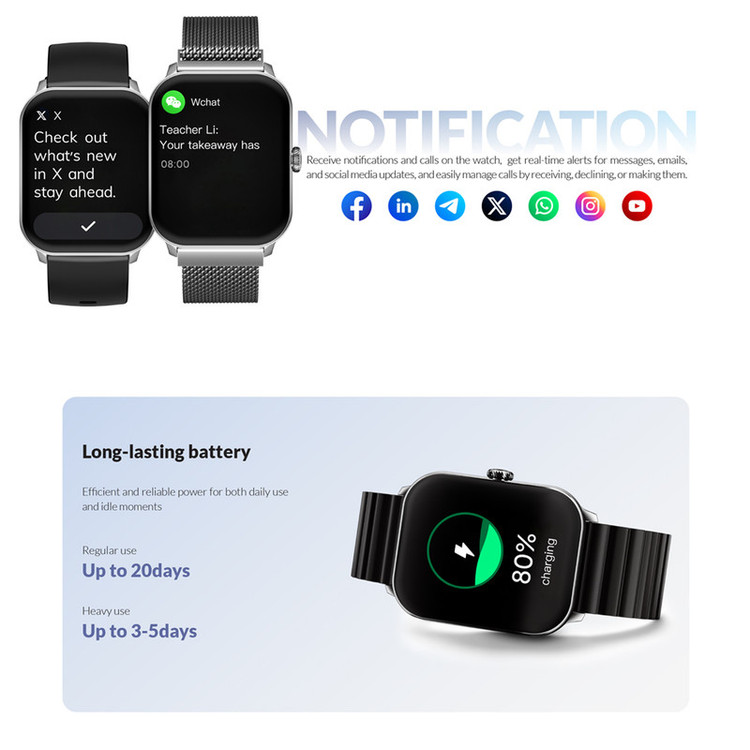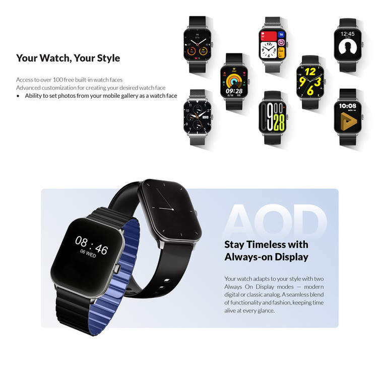 قابلیتهای ساعت هوشمند : قابلیت مکالمه از طریق بلوتوث , کنترل موسیقی (Music Player) , پشتیبانی از زبان فارسی در منو و سیستمعامل , قابلیت تغییر طرح ساعت یا تم , صفحه همیشه روشن (Always-on Display)